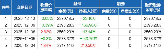 芯片ETF基金:连续4日融资净偿还累计346.95万元(12-10)
