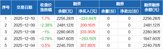 标普消费ETF:融资净偿还224.84万元,融资余额2256.28万元(12-10)