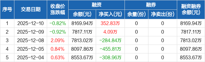 电池50ETF:融资净买入352.83万元,融资余额8169.94万元(12-10)