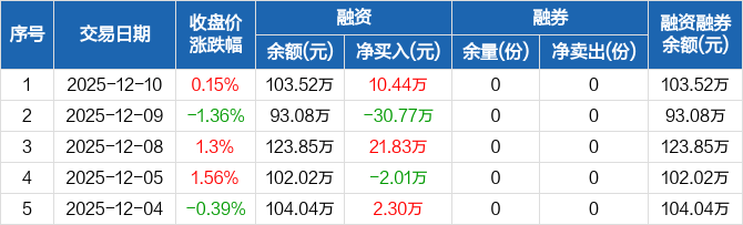 计算机ETF南方:融资净买入10.44万元,融资余额103.52万元(12-10)