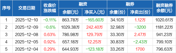 沪深300ETF南方:融资净偿还165.6万元,融资余额863.78万元(12-10)