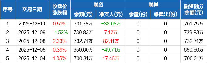 新能源车ETF:融资净偿还38.08万元,融资余额701.75万元(12-10)
