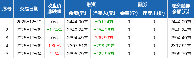 恒生科技ETF嘉实:融资净偿还96.24万元,融资余额2444万元(12-10)