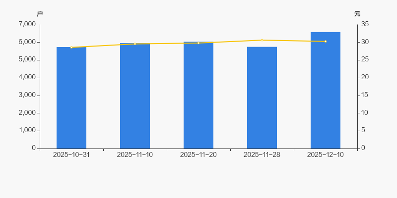 2025年10月31日至今,公司股东户数显著增长,区间涨幅为14.70%。2025年10月31日至2025年12月10日区间股价上涨5.91%。
