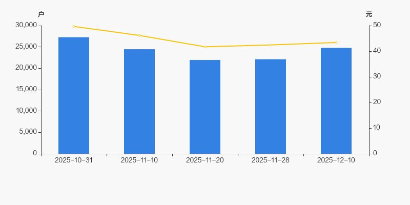 2025年10月31日至今,公司股东户数有所下降,区间跌幅为9.12%。2025年10月31日至2025年12月10日区间股价下降12.62%。