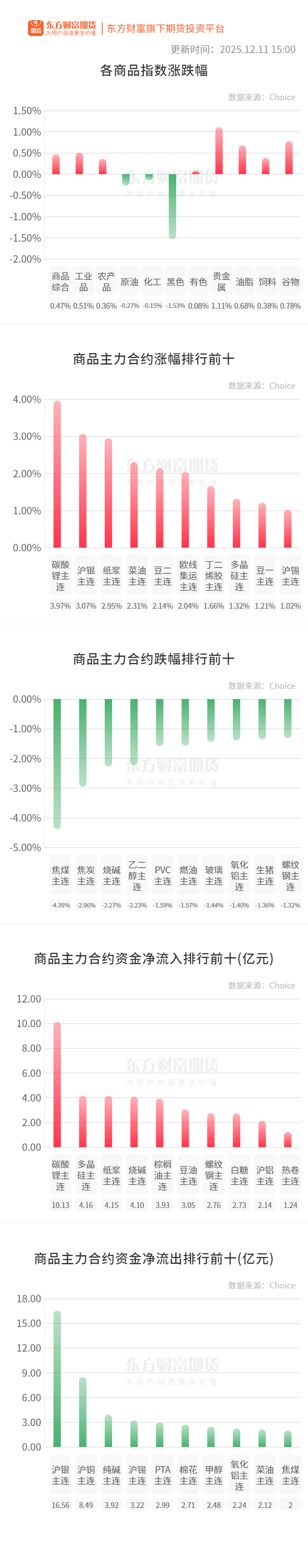 螺纹钢:据Mysteel,截至12月11日当周,螺纹钢产量、表需连续第三周下降,厂库、社库连续第九周下降:① 螺纹产量178.78万吨,较上周减少10.53万吨,降幅5.56%;② 螺纹厂库140.80万吨,较上周减少1.88万吨,降幅1.32%;③ 螺纹社库338.70万吨,较上周减少22.43万吨,降幅6.21%;④ 螺纹表需203.09万吨,较上周减少13.89万吨,降幅6.40%。(Mysteel)