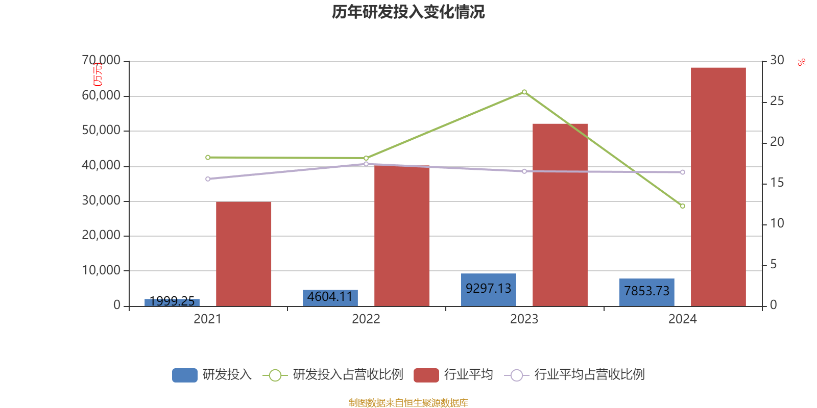 2024年全年,公司研发投入金额为7853.73万元,同比下降15.53%;研发投入占营业收入比例为12.25%,相比上年同期下降13.98个百分点。