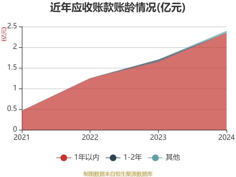 从应收账款账龄结构来看,截至2024年末,公司账龄在1年以内的应收账款余额为2.34亿元,较上年末增长6993.61万元。
