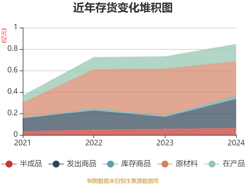 从存货变动来看,截至2024年末,公司存货账面价值为8487.28万元,占净资产的7.56%,较上年末增加1172.93万元。其中,存货跌价准备为2517.02万元,计提比例为22.87%。