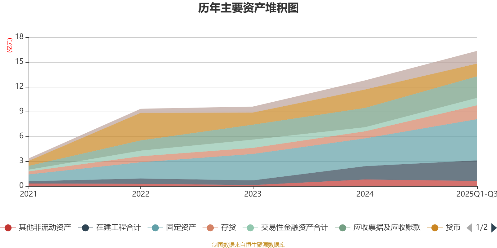 资产重大变化方面,截至2025年三季度末,公司货币资金较上年末减少30.7%,占公司总资产比重下降7.98个百分点;固定资产较上年末增加47.85%,占公司总资产比重上升4.09个百分点;存货较上年末增加97.87%,占公司总资产比重上升3.63个百分点;在建工程合计较上年末增加55.19%,占公司总资产比重上升2.66个百分点。