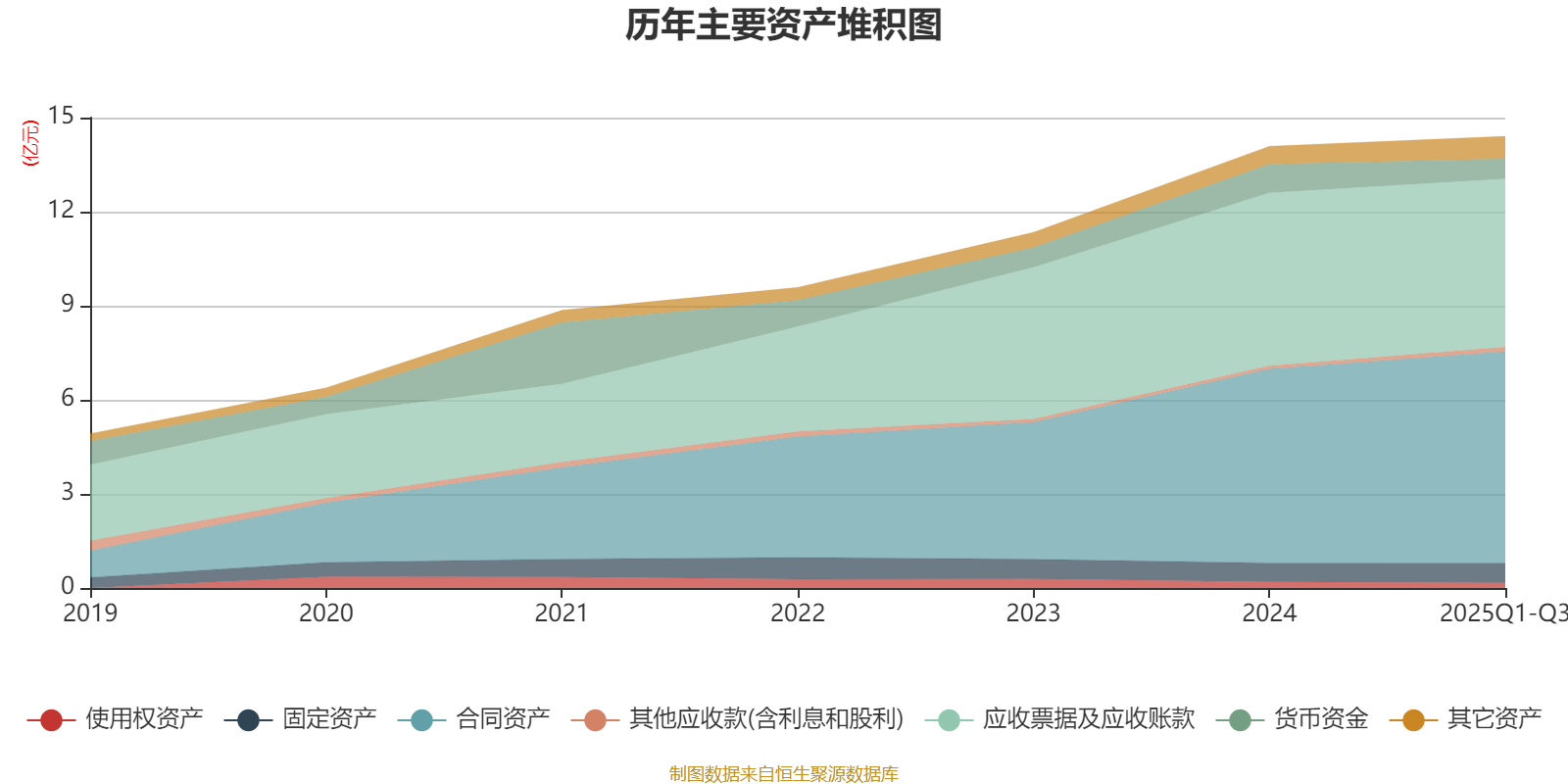 资产重大变化方面,截至2025年三季度末,公司合同资产较上年末增加9.04%,占公司总资产比重上升2.92个百分点;货币资金较上年末减少29.9%,占公司总资产比重下降2.05个百分点;应收票据及应收账款较上年末减少2.76%,占公司总资产比重下降1.91个百分点;存货较上年末增加93.24%,占公司总资产比重上升0.58个百分点。