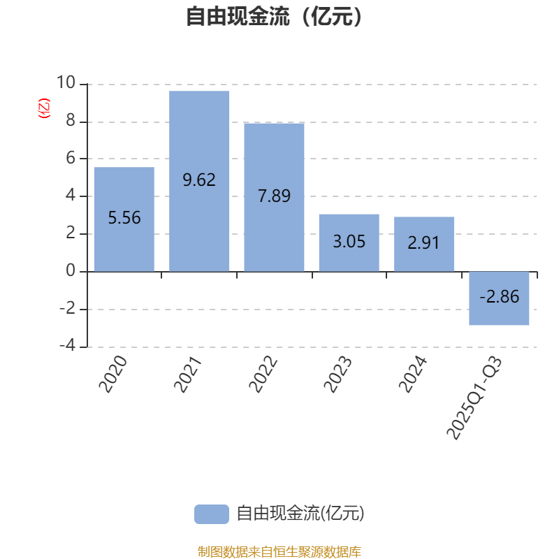 2025年前三季度,公司经营活动现金流净额为1.8亿元,同比增长3.52%;筹资活动现金流净额3.59亿元,同比增加2.73亿元;投资活动现金流净额-10.93亿元,上年同期为-4.6亿元。