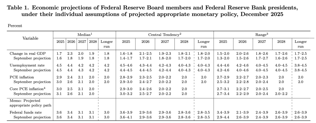 最新公布的点阵图显示,到2026年底,美联储对联邦基金利率的预估中值为3.4%,比目前3.5%—3.75%的区间低0.25个百分点。这一预测与上一季度的预测相同。这意味着明年美联储或只降息一次。