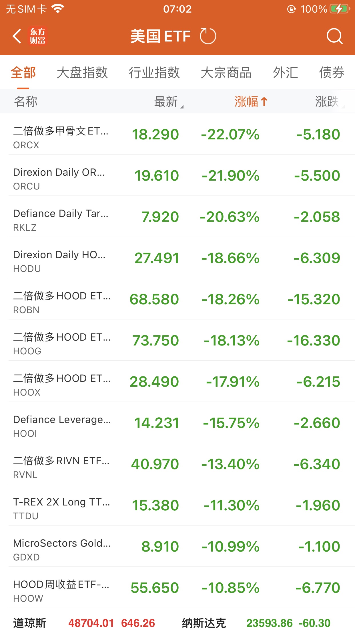 2倍做多HOOD ETF-T-REX (ROBN.US) 跌18.26%,成交额1.44亿美元。