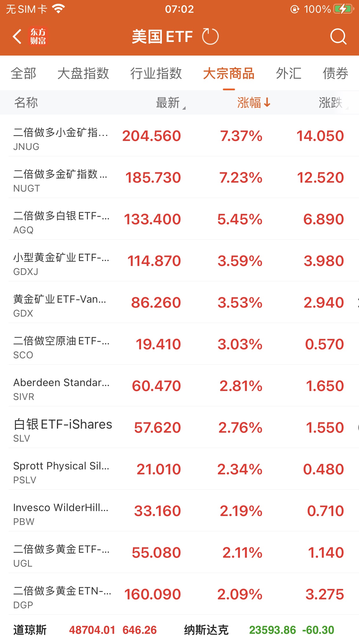 2倍做多白银ETF-ProShares (AGQ.US) 升5.45%,成交额7.23亿美元。