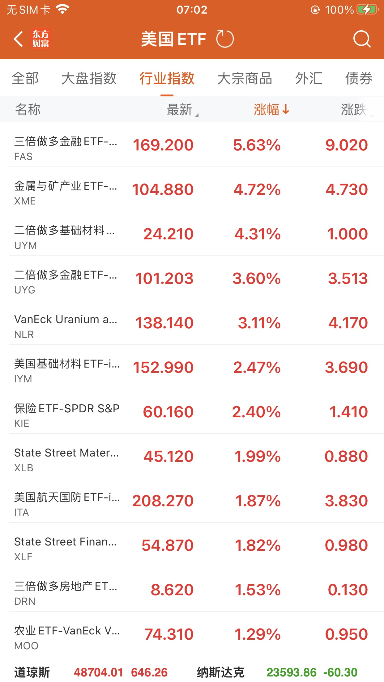 2倍做多基础材料ETF-ProShares (UYM.US) 升4.31%,成交额36.76万美元。