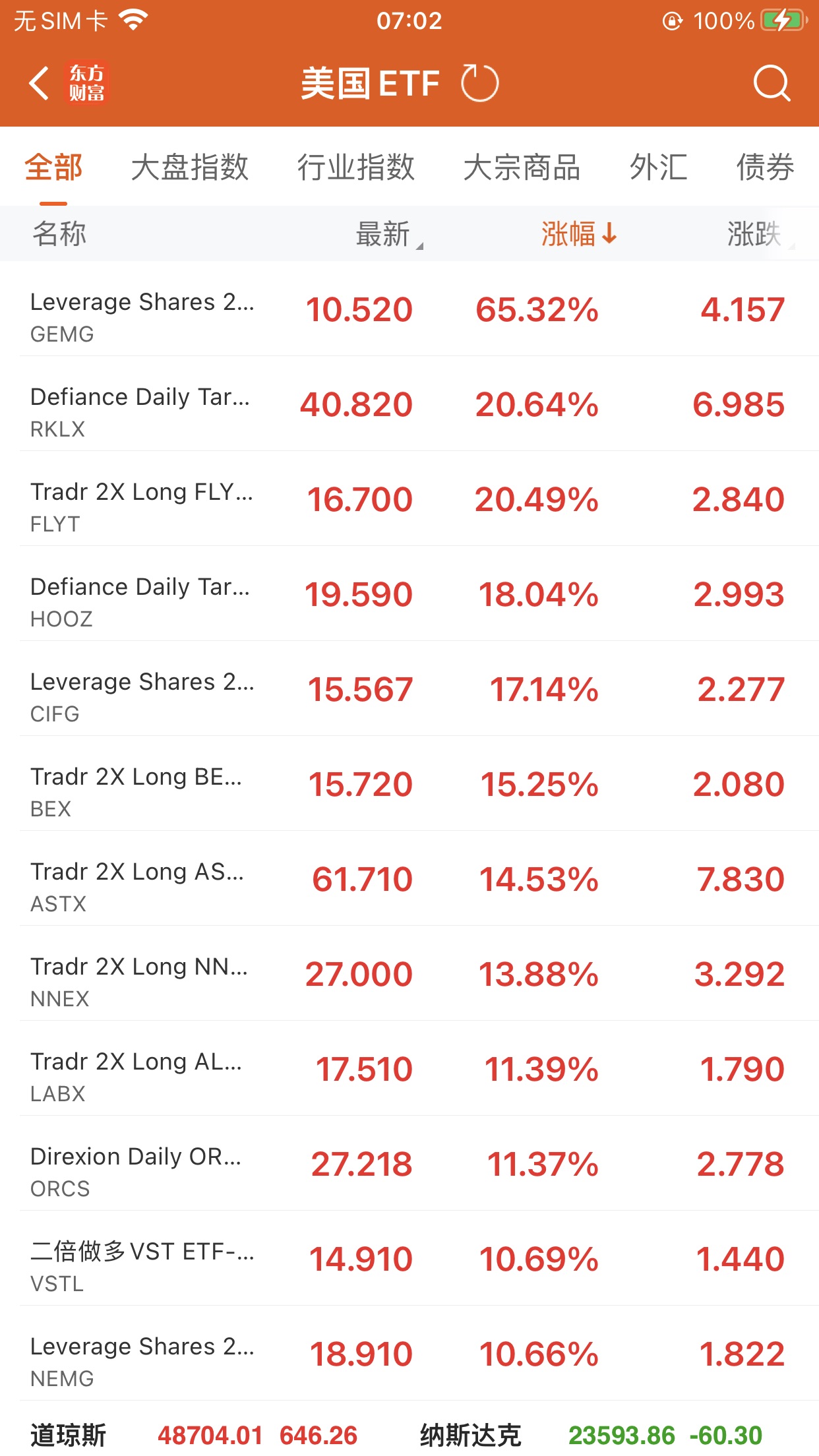 2倍做多GEMI ETF-Leverage Shares (GEMG.US) 升65.32%,成交额251.38万美元。