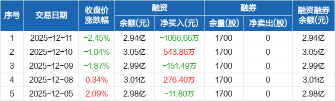 创力集团:融资净偿还1066.66万元,融资余额2.94亿元(12-11)