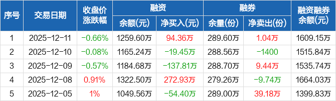 A500ETF南方:融资净买入94.36万元,融资余额1259.6万元(12-11)
