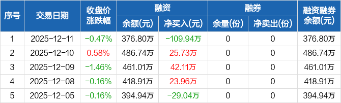 标普500ETF:融资净偿还109.94万元,融资余额376.8万元(12-11)