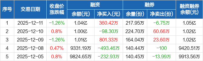 养殖ETF:融资净买入360.42万元,融资余额1.04亿元(12-11)