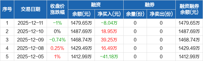医疗ETF易方达:融资净偿还8.04万元,融资余额1479.65万元(12-11)