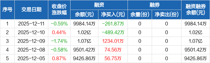 港股通科技30ETF:融资净偿还261.87万元,融资余额9984.14万元(12-11)