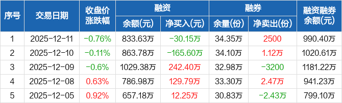 沪深300ETF南方:融资净偿还30.15万元,融资余额833.63万元(12-11)