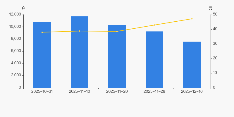 自2025年11月10日以来,公司股东户数连续3期下降,截至目前减幅为35.56%。2025年11月10日至2025年12月10日区间股价上涨21.55%。