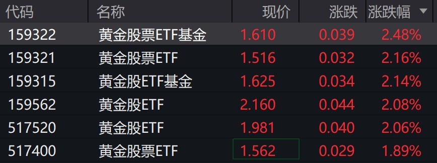 黄金概念股走强,山东黄金、中国黄金国际涨超3%,中金黄金、招金矿业、紫金矿业涨超2%。