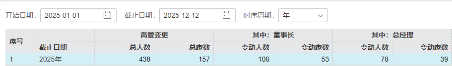 今年以来,公募行业频频出现高管变动。Wind数据显示,截至12月12日,今年以来公募行业高管变更人数为438人,涉及157家基金公司。其中,董事长变动人数为106人,总经理变动人数为78人。