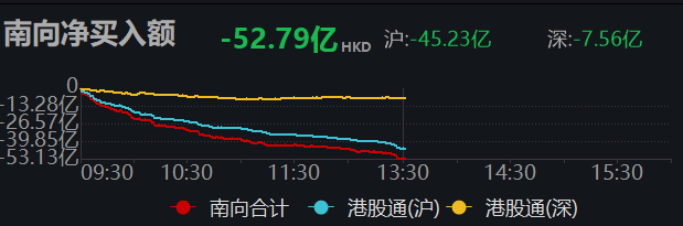 12月12日13时31分,南向资金净卖出超50亿港元。
