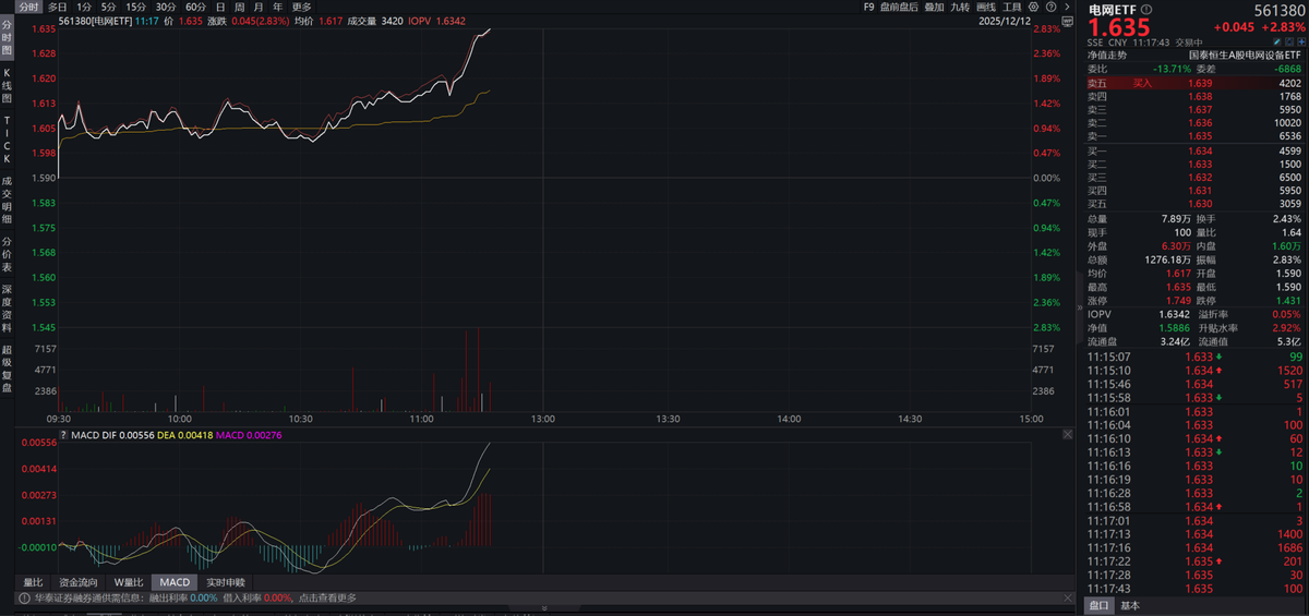 国内电网建设叠加AI电力缺口催化,电网设备板块利好不断,电网ETF(561380)涨超2.8%。
