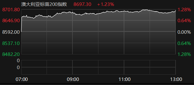 12月12日,澳大利亚标普200指数收涨1.23%。