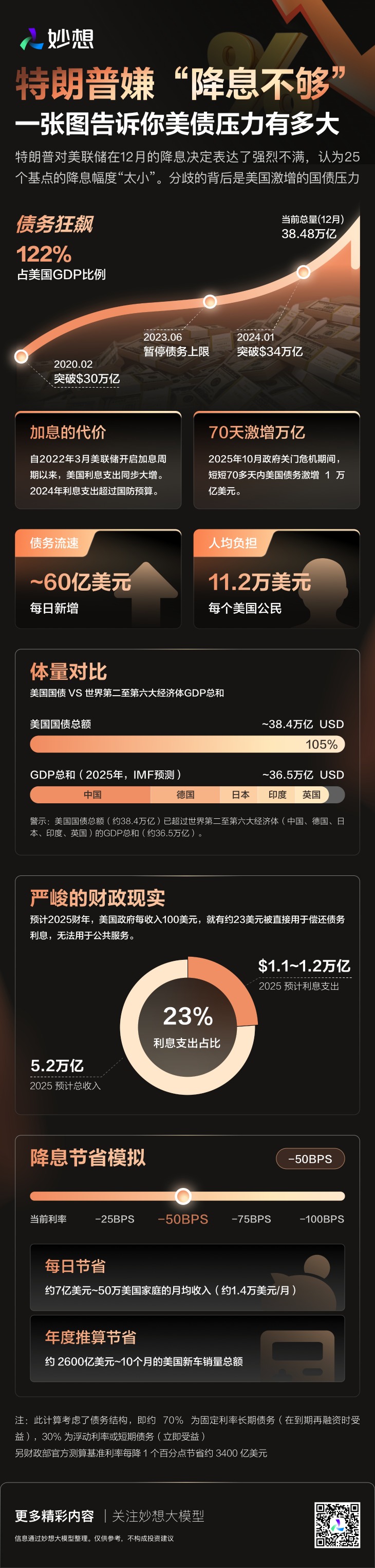 特朗普嫌“降息太少”?一张图告诉你美债压力有多大!