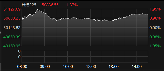 12月12日,日韩股市收涨。日经225指数收涨1.37%,报50836.55点;韩国综合指数收涨1.38%,报4167.16点。