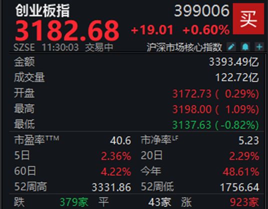 12月12日,A股低开高走,截至上午收盘,上证指数午盘跌0.04%报3871.78点,深证成指涨0.57%,创业板指涨0.6%,北证50涨1.12%,科创50涨0.72%,中证A500涨0.39%;A股半日成交1.26万亿元。