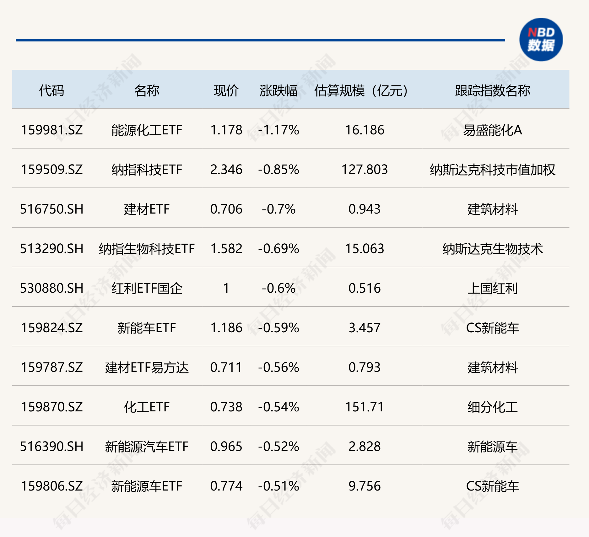 下跌方面,能源化工ETF跌超1%。