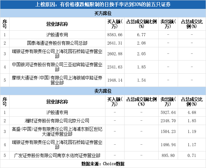 沪股通现身龙虎榜,航天环宇上涨10.99%(12-12)