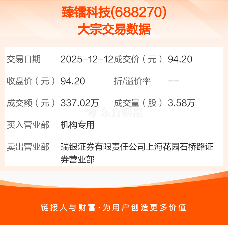 大宗交易:臻镭科技成交337.02万元(12-12)