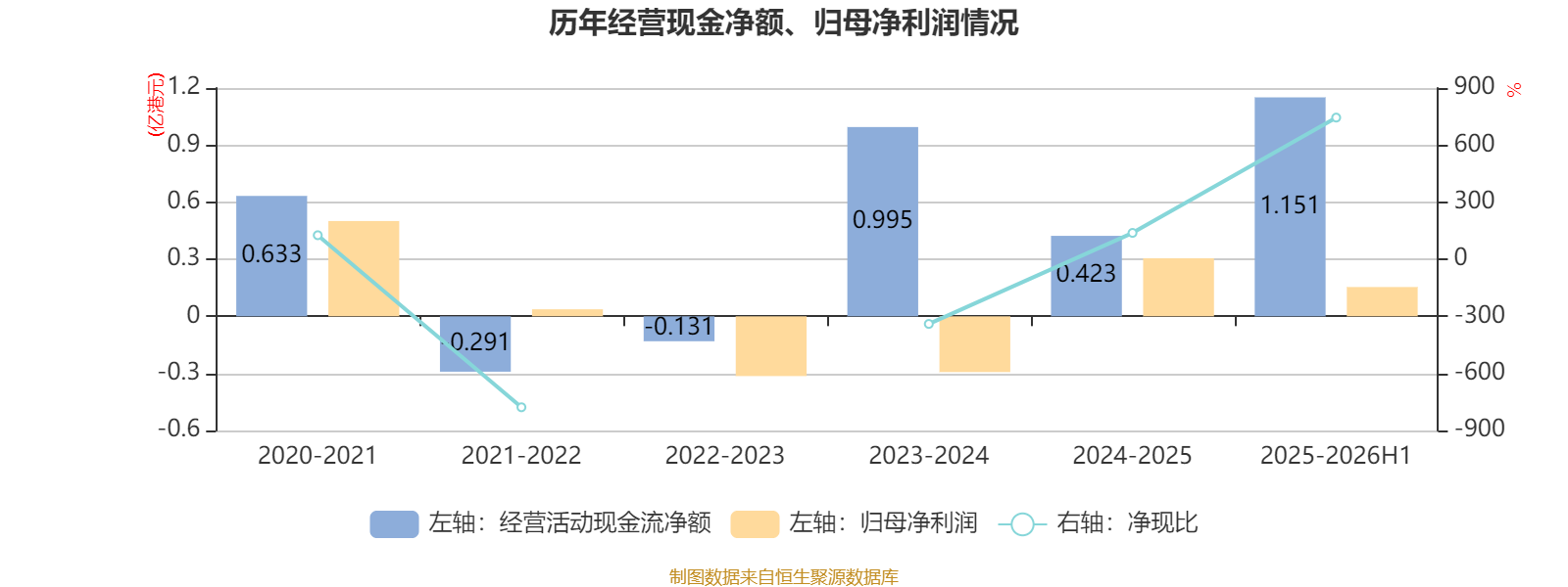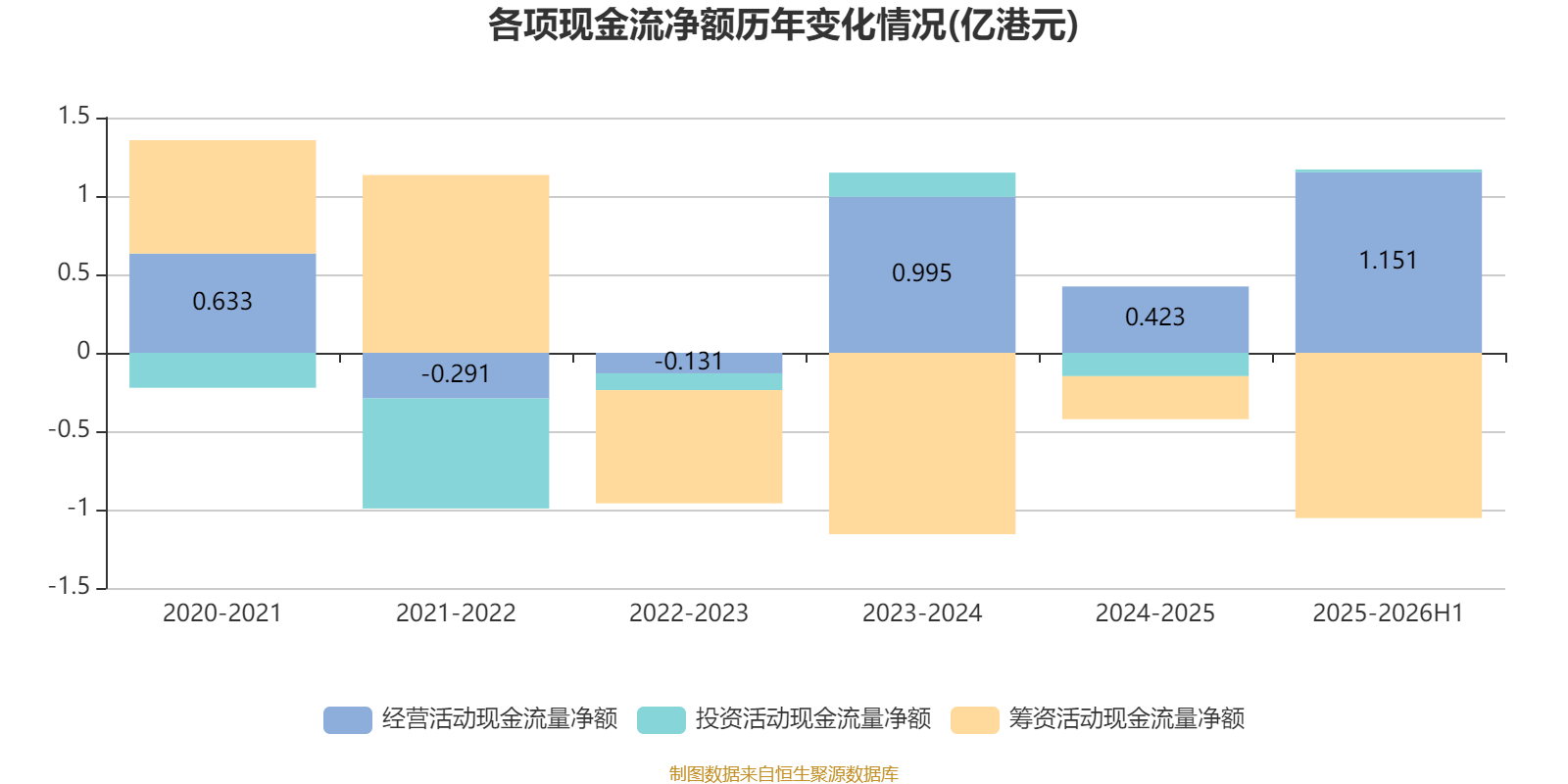 报告期内,公司经营活动现金流净额为1.15亿港元;筹资活动现金流净额-1.05亿港元;投资活动现金流净额176.4万港元。