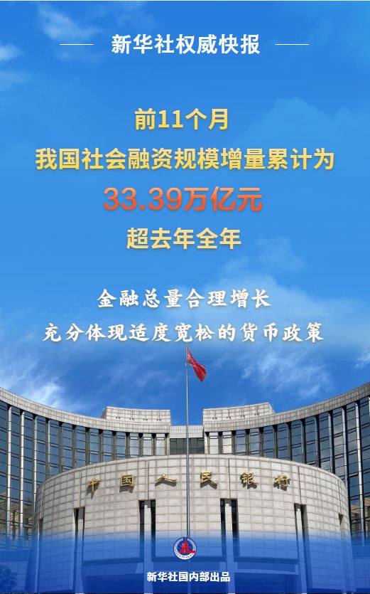 新华社权威快报丨前11个月我国社融规模增量超去年全年