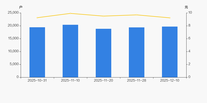 2025年10月31日至今,公司股东户数有所增长,区间涨幅为1.36%。2025年10月31日至2025年12月10日区间股价下降0.22%。