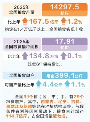 时报数说 超1.4万亿斤!2025年全国粮食实现丰收