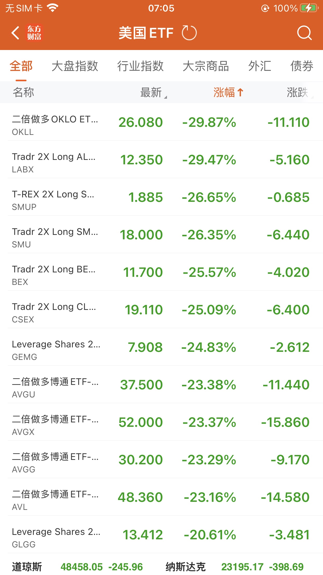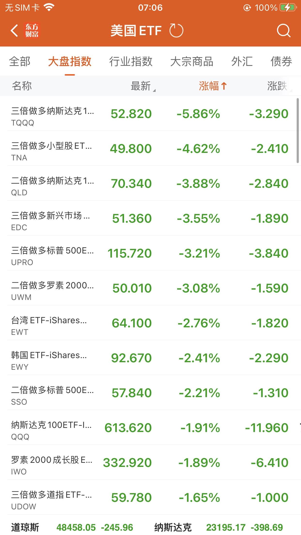 2倍做多纳斯达克100指数ETF-ProShares(QLD.US) 跌3.88%,成交额5.61亿美元。