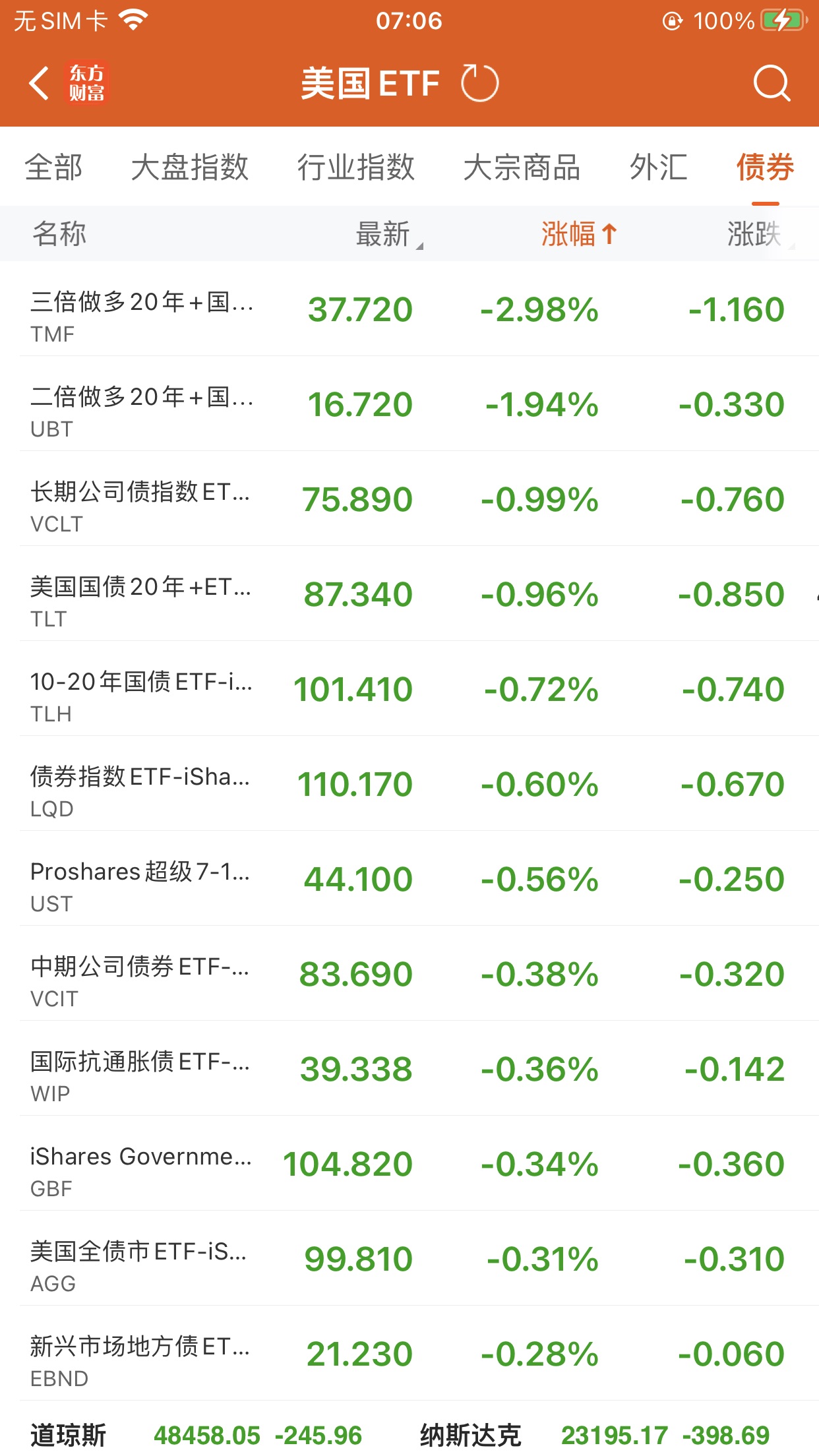 20+年以上美国国债ETF-iShares(TLT.US) 跌0.96%,成交额40.43亿美元。