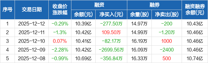 上海机电:融资净偿还277.5万元,融资余额10.39亿元(12-12)
