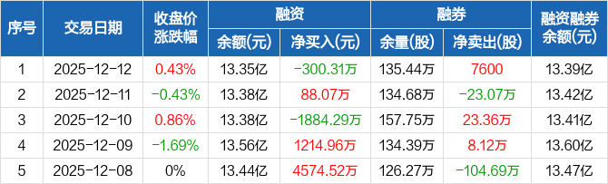 中国能建:融资净偿还300.31万元,融资余额13.35亿元(12-12)