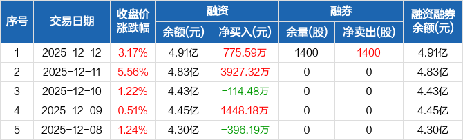 旭光电子:融资净买入775.59万元,融资余额4.91亿元(12-12)