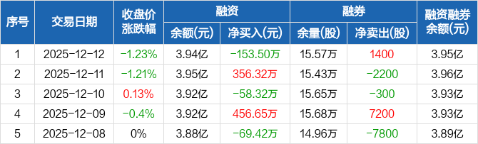 福瑞达:融资净偿还153.5万元,融资余额3.94亿元(12-12)